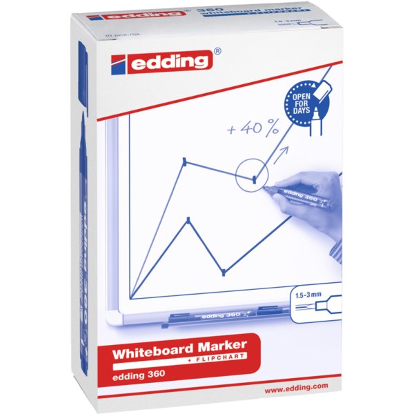 Popisovač na bílé tabule s kulatým hrotem. Smazatelný za sucha prakticky ze všech nepórovitých povrchů jako např. smalt, sklo, melamin. Vhodný pro psaní na všechny typy bílých tabulí. Inkoust typu cap off umožňuje ponechat popisovače po určitou dobu bez nasazeného uzávěru aniž by vyschly. Popisovač obsahuje pigmentový inkoust se slabým zápachem, neobsahují butylacetát. Šířka stopy 1,5-3 mm.