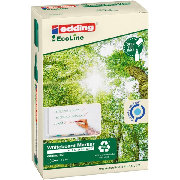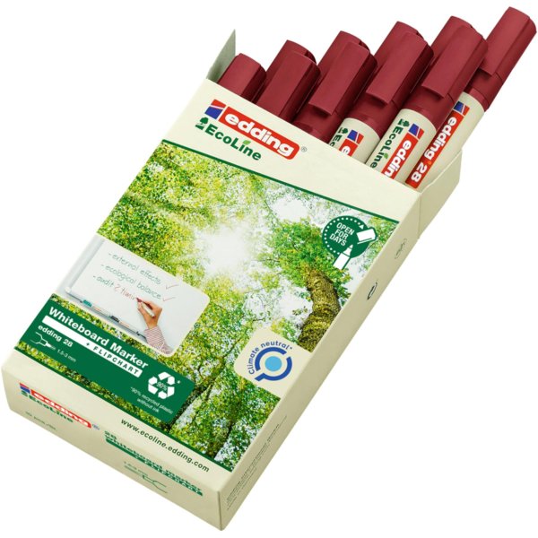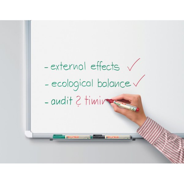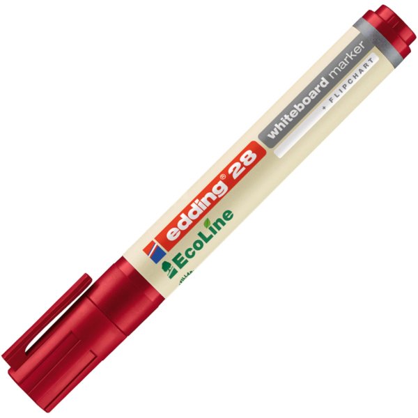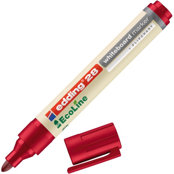 • Červený popisovač na bílé tabule z ekologické řady edding Ecoline