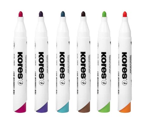 Sada šesti barev popisovačů na bílé tabule a flipcharty Stopa popisovače rychle zasychá Je možné jej použít i na sklo Popisovač vydrží bez víčka min. 48 hod.