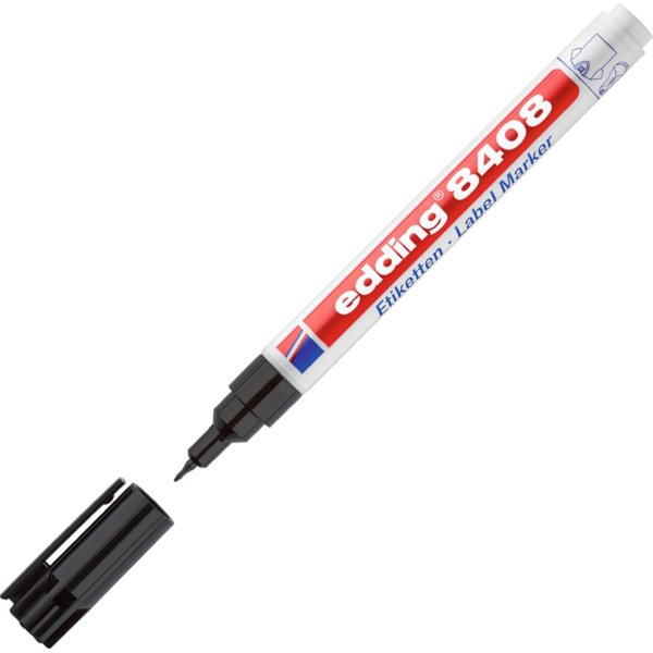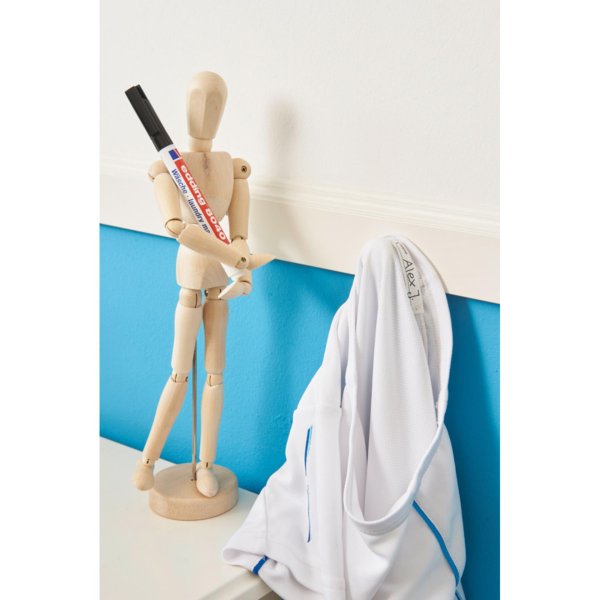 Součástí balení je černý popisovač na textil Edding 8408 a 25 štítků