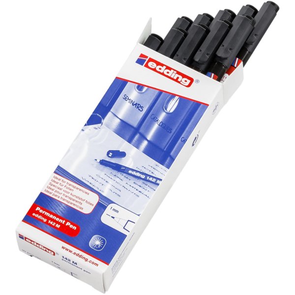 Rychleschnoucí permanentní popisovač na fólie a hladké povrchy Inkoust na alkoholové bázi, odolný proti vodě Šíře stopy: 1,0 mm Množství v originálním balení: 10 ks