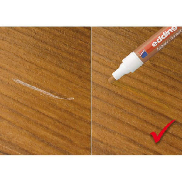 Speciální opravný popisovač je vhodný pro maskování škrábanců a drobných poškození na dýze a různých druzích dřeva