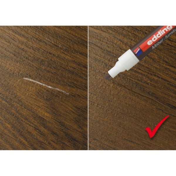 Speciální opravný popisovač je vhodný pro maskování škrábanců a drobných poškození na dýze a různých druzích dřeva