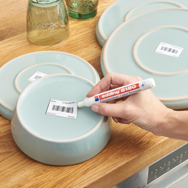 Popisovač slouží ke snadnému odstranění většiny papírových štítků, etiket a zbytků lepidla např. od dálničních známek, na podrážkách bot, na skle a porcelánu