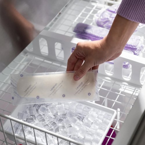 Před zmrazením zajistěte rovnoměrné rozložení gelu tak, že jej několikrát jemně vmasírujete po celé délce vložky. Uložte spolu se sáčkem rovně do mrazničky nebo chladničky po dobu nejméně 24 hodin. Před otevřením sáček jemně ohněte, aby se vložka uvolnila, poté vložku položte na poporodní vložku tak, aby měla přímý kontakt s vaší pokožkou.