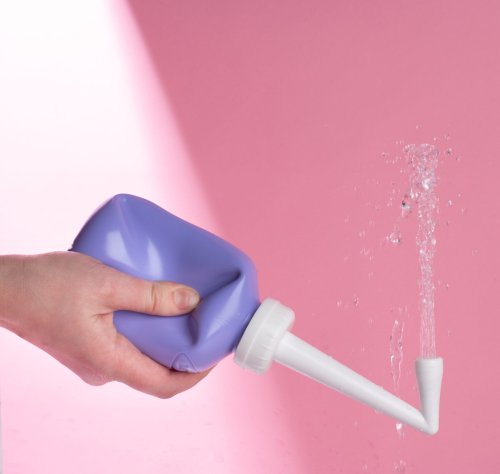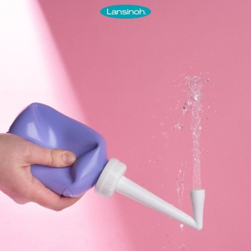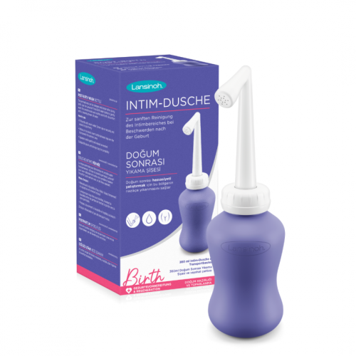 plastová lahvička pro čištění intimních partií jemným proudem vody po porodu (namísto toaletním papírem)