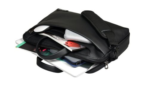Vlastnosti: *Elegantní a moderní provedení *Celá taška je polstrovaná pro bezpečí vašeho notebooku *Pohodlná rukojeť *Popruh pro připevnění na vozík *Nastavitelný a odnímatelný ramenní popruh *Velká přední kapsa na zip *2 boční kapsy pro příslušenství (napájení / myš) *Velkorysý prostor pro notebook a dokumenty