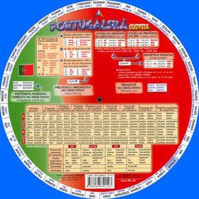 Jedinečné a gramaticky velmi obsáhlé oboustranné kolečko obsahuje celkem 92 nejpoužívanějších portugalských nepravidelných sloves.Pomůcka na obou stranách obsahuje gramatické tabulky s časováním pomocných sloves Haver, Ter, Estar, Ser a tvořením složených slovesných tvarů.Pomůcka je vhodná jak pro začátečníky, tak i pokročilé studenty portugalského jazyka.