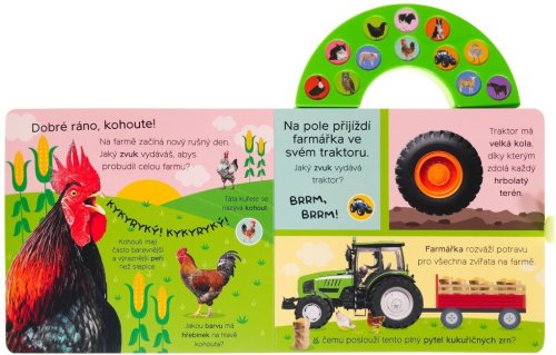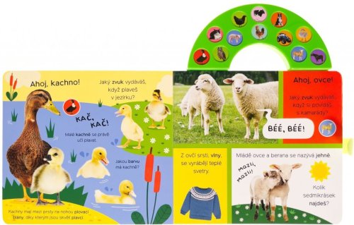 S touto zvukovou knihou mohou děti poznat zvířata z farmy za pomoci zvuků. Po stisknutí tlačítka si dítě poslechne, jaké různé zvuky zvířata vydávají, a zvuk si spojí s konkrétním zvířetem. Díky tomu si zvíře lépe zapamatuje a snadno rozezná mezi ostatními. Kniha se tak stává skvělou pomůckou pro rozšiřování základní slovní zásoby a poznávání světa kolem sebe. Víš, jak dělá kohout, kráva, ovce, nebo kůň? Dozvíš se i další zajímavé informace o tom, čím jsou nám hospodářská zvířata užitečná. Stačí zmáčknout příslušný obrázek na držadle se zvukovým modulem a svět zvířat doslova ožije pod tvýma rukama. Prodejní cena zvukové knihy již obsahuje recyklační poplatky.