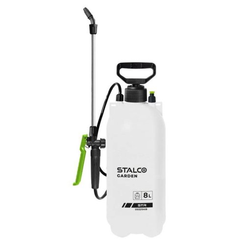 nádrž z odolného plastu HDPE teleskopický nástavec z nerezové oceli 150 cm dlouhá hadice popruh pro přenos nastavitelná tryska bezpečnostní ventil aretační tlačítko spouště v rukojeti