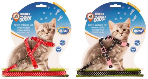 Postroj s vodítkem, který má kouzelný motiv puntíků ve dvou barevných variantách: