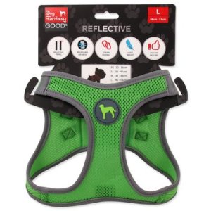 Postroj pro štěňata s nastavitelným obvodem hrudníku v horní části.