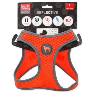 Postroj pro štěňata s nastavitelným obvodem hrudníku v horní části.