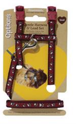 Nylonový postroj a vodítko pro králíky - vzor bílé tlapky. Nastavitelný nylonový postroj pro králíka s obvodem krku 19-30 cm a obvodem těla 25-41 cm. Postroj se zapínáním na bezpečnostní plastové přezky a s kovovým poutkem pro snadné připnutí vodítka. Nylonové vodítko ve stejném designu snadno připnete k postroji pomocí kovové karabinky. Postroj s vodítkem je k dispozici v červené (vínové) nebo modré barvě. Šířka postroje a vodítka: 1 cm.