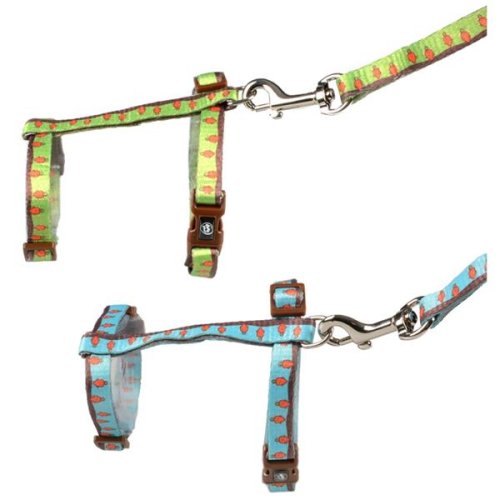 Tento pohodlný postroj lze nastavit tak, aby se perfektně přizpůsobil velikosti králíka. Je ušitý tak, aby optimálně rozložil tlak na tělo zvířete. Postroj má zapínání na přezky a vodítko je opatřeno dostatečně pevnou karabinou. Rozměry (cca): postroj 25–45 cm délka vodítka 120 cm šířka pásků 1 cm Materiál: polyester Barva: modrá, zelená – zasíláme dle aktuální skladové zásoby. Přejete-li si konkrétní barvu, napište ji do poznámky k objednávce. Vzor: mrkvičky