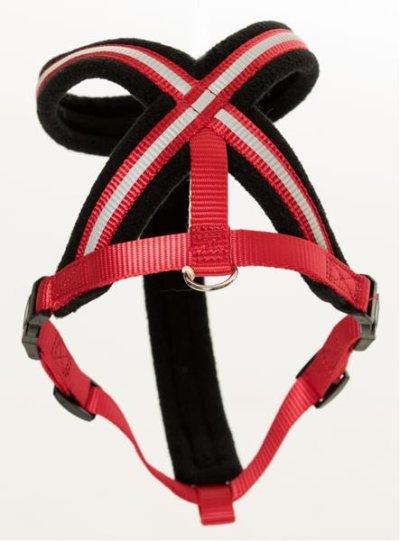 Reflexní nylonový postroj na malého psa v červeno/černé barvě. Postroj je vyroben v kombinaci velmi praktického nylonu a měkké fleecové podšívky, která zajišťuje komfortní a zároveň velmi pohodlné nošení. Nastavitelná velikost postroje kolem hrudníku 48-55 cm. Při zvolení správné velikosti, postroj nijak psa neomezuje v pohybu a neodírá srst. Tato velikost postroje je vhodná pro psa o velikosti, jako je např. jack russell teriér nebo shi-tzu. Velmi jednoduché nasazení na psa. Zapínání na plastové přezky. Pro ještě větší bezpečnost psa je postroj opatřen reflexními proužky. Rozměry: 48-55 cm