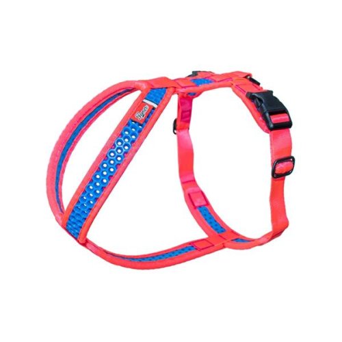 Údržba: Postroj z EVA pěny lze omýt vodou a v případě silného znečištění vyprat v pračce. Stačí obalit kovové prvky, aby neodřely pračku. Barva: růžovomodrá Tabulka velikostí: