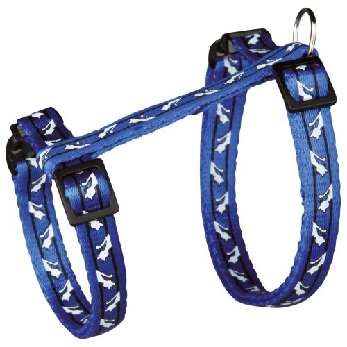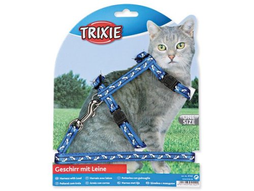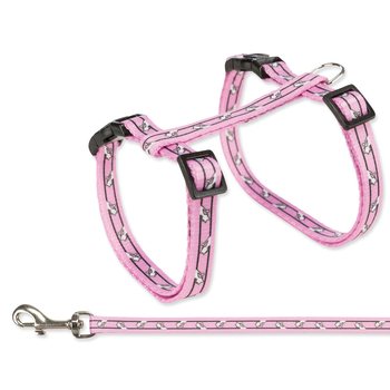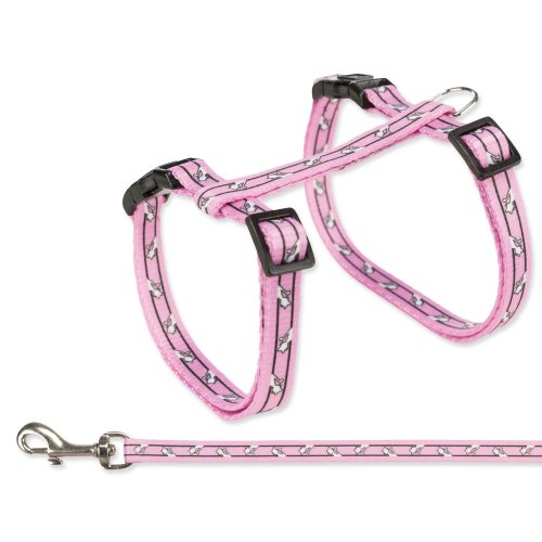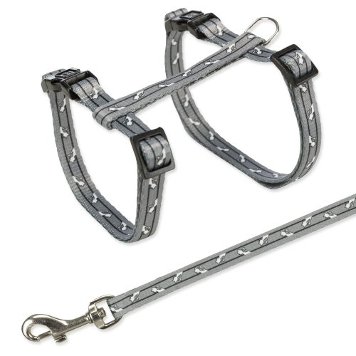 Postroj s vodítkem pro kočky milující procházky. Je vyroben z nylonu. Zvyšuje bezpečnost a předchází úrazům. Zapínání pomocí rychlospony.