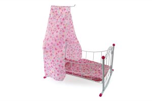 Kovová postýlka pro miminko max velikosti 38 cm. Postýlka je s nebesy, slabou peřinkou malým polštářkem.
