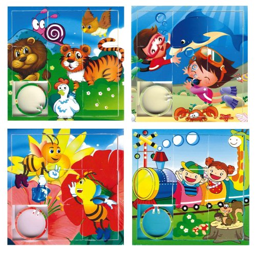 Návyková zábava pro šikovné prstíky! Posunovací puzzle nejen pro rozptýlení dětí. Rozházejte dílky a následnými pohyby - doleva, doprava, nahoru a dolů, poskládejte barevný obrázek. Osm stejně velkých dílků s postranními drážkami tvoří jeden finální obrázek, který lze opětovně skládat a rozkládat pomocí jednoduchých pohybů jeho plastových částí. Čtvercové dílky jsou upevněné v rámečku a díky drážkám je lze jednoduše posouvat do stran, aniž by vypadávaly. Na rámečku je zobrazená miniatura výsledného obrázku, která slouží jako předloha pro posouvání dílků na správné místo. Součástí balení je i plastová západka, která drží výsledný obrázek na svém místě. POZNÁMKA: Fotografie je pouze ilustrativní, motivy dodáváme dle skladových zásob. Rozměr složeného puzzle cca 8,5 x ,5 cm