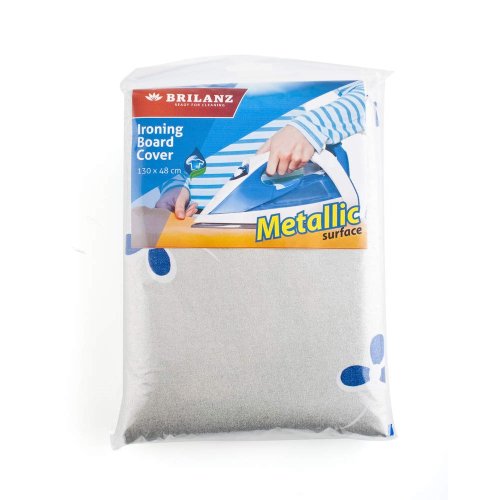 Metalický povrch potahu odráží teplo, čímž urychluje žehlení. Upevnění potahu k prknu pomocí stahovacího provázku.