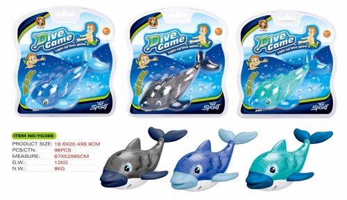 Potápěcí delfín se světlem o velikosti 14 cm. Po vložení do vody svítí. Provoz na 3 knoflíkové baterie AG13 (součástí balení).