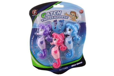 Zábavná hračka do vody - potápění mořští koníci. Materiál plast. Baleno na blistru. Rouměry balení cca 17x20x2,5 cm. V balení 3 ks koníků o velikosti cca 10 cm. Doporučený věk 6+