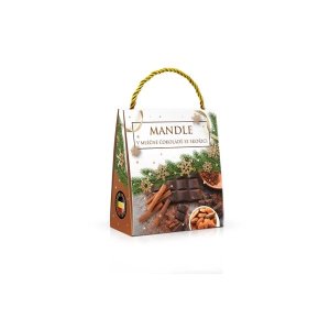 Mandle v cukru s vanilkou v mléčné čokoládě se skořicí Hmotnost: 130 g Rozměr: 9 x 16,3 x 4,7 cm