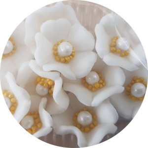 Cukrové zdobení v podobě modrých mašliček na dort od K Decor.