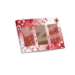 Výběr velmi jemných čokolád, vyrobených z nejjakostnějších surovin - 2 x mléčná čokoláda s jahodovým posypem, hořká 60% Hmotnost: 300 g Rozměr: 23,5 x 16,5 x 0,9 cm