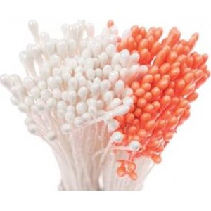 Barevné pestíky s perleťovým efektem v barvě bílé a oranžové, pro tzv. jedlé květy vyrobené z gumpasty.