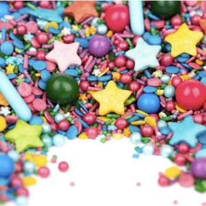 Cukrové zdobení v podobě konfet a hvězdiček.