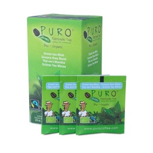 Svěží Fairtrade zelený čaj Puro ze Srí Lanky Balení: nálevové sáčky s přebalem: 25 x 1,5 g Fairtrade, pěstování podle pravidel spravedlivého obchodu, který přispívá ke zlepšení životní úrovně rodin drobných …