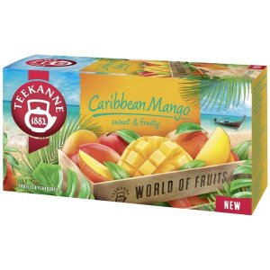 Aromatizovaný ovocný čaj v nálevových sáčcích s příchutí manga Složení: jablko, ibišek, bílý ibišek, aroma manga (7%), listy ostružiny, regulátor kyselosti: kyselina citrónová, listy stevie, koncentrát …