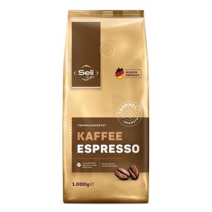 Pražená zrnková káva Seli - Espresso, směs arabiky a robusty a střední stupeň pražení kávě dodají výrazné aroma a intenzivní chuť Robusta 90%, Arabica 10% Hmotnost: 1 000 g