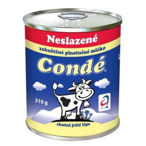 Neslazené zahuštěné mléko Condé v plechovce, výborné do kávy či čaje Vyrobeno z výběrového mléka, obsah tuku 8 % Plechovka s praktickým očkem na otevření Hmotnost: 310 g