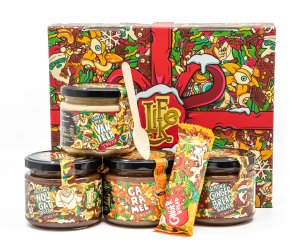 Poctivá směs mandlí a vlašských ořechů doplněná karamelovou čokoládou, medem a špetkou perníkového koření.
