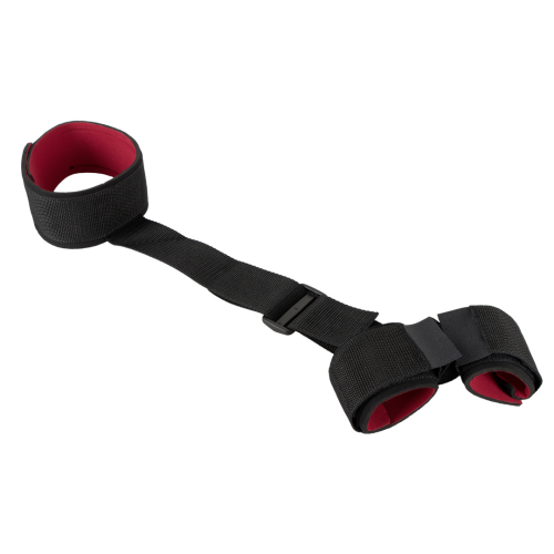 Kombinovaná pouta. Obojek na krk je přes záda propojen s pouty naruce, které se stanou naprosto nehybné. Polstrované popruhy na suchý zip.