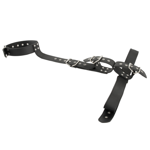 Poutací set s obojkem kolem krku a pásem přes boky je 100% veganský bez použití živočišných materiálů. Celý set je plně nastavitelný pomocí kovových spon.