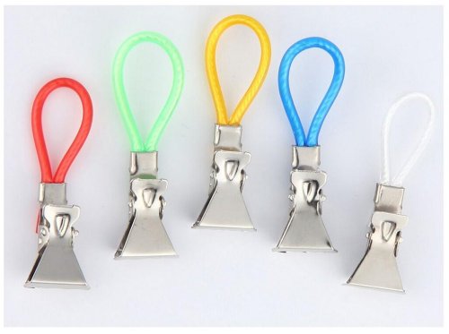Skřipce na utěrky (háčky, ouška) jsou praktickým pomocníkem v domácnosti na pověšení ručníků a utěrek v koupelně či kuchyni. Set 5 ks. Materiál - guma, kov. Assort barev. Rozměry - 1,5 x 5,2 cm.