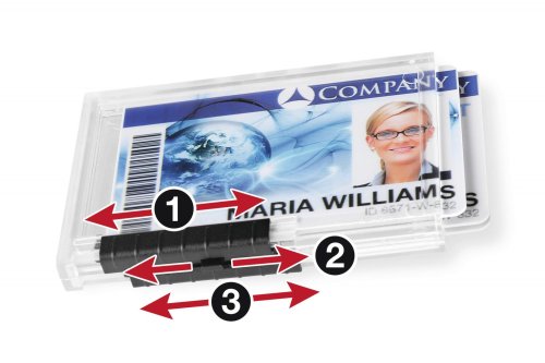Držák karet na 3 karty Samostatné komory chrání např. karty s magnetickými proužky před poškozením Snadné vyjímání karet pomocí samostatných posuvníků Čirý plast pro dobrou čitelnost Upevňovací držák …