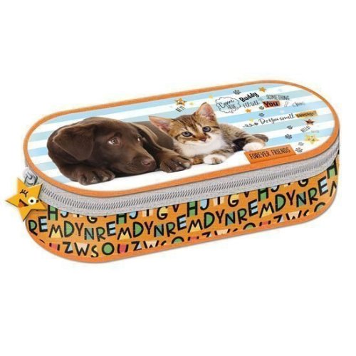 Pevné oválné pouzdro ochrání všechny Vaše psací potřeby. Je opatřeno zipem a uvnitř naleznete klopu s poutky na pera či tužky, které používáte nejvíce. Uvnitř je pak spoustu prostoru ještě na další pastelky nebo fixy, které do etue volně vložíte. Nechybí zde ani vnitřní kapsička na zip. Tato etue se hodí pro školáky 2.stupně ZŠ.Materiál: PolyesterRozměr: 95 x 215 x 55 mm