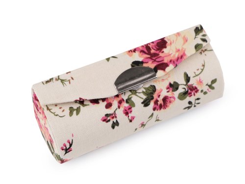 Malé pouzdro ochrání vaši oblíbenou rtěnku před vnějšími škodlivými vlivy. Je velice pevné, uvnitř má praktické zrcátko, díky kterému se můžete nalíčit kdykoliv a kdekoliv. Zapíná se na klasický patent, který zaručuje, že se pouzdro samovolně neotevře. Textilní potah má potisk drobných květů růží.