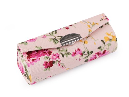 Malé pouzdro ochrání vaši oblíbenou rtěnku před vnějšími škodlivými vlivy. Je velice pevné, uvnitř má praktické zrcátko, díky kterému se můžete nalíčit kdykoliv a kdekoliv. Zapíná se na klasický patent, který zaručuje, že se pouzdro samovolně neotevře. Textilní potah má potisk drobných květů růží.