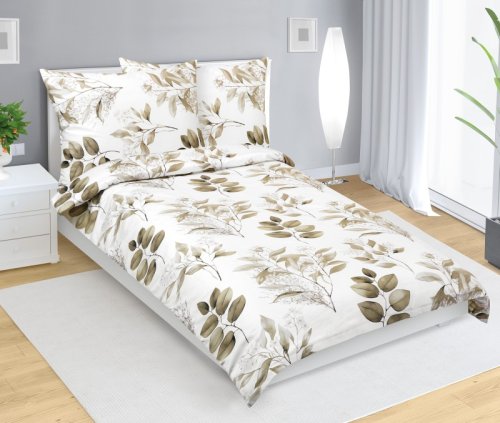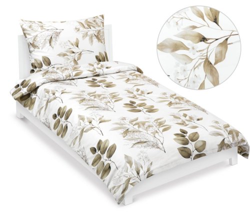 Povlečení bavlněný satén - 140x200, 70x90 cm - Listy