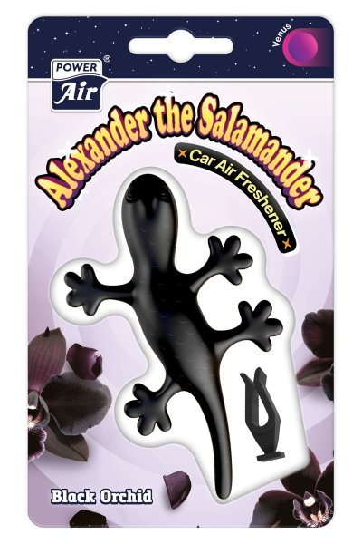 Hravý osvěžovač vzduchu POWER AIR Alexander ve tvaru mloka k upevnění do mřížky ventilátoru automobilu. Je vyroben z "chytrého" plastu s postupným a dlouhotrvajícím uvolňováním vůně do prostoru, současně eliminuje pachy.