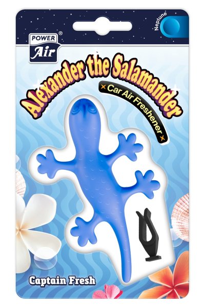 Hravý osvěžovač vzduchu POWER AIR Alexander ve tvaru mloka k upevnění do mřížky ventilátoru automobilu. Je vyroben z "chytrého" plastu s postupným a dlouhotrvajícím uvolňováním vůně do prostoru, současně eliminuje pachy.