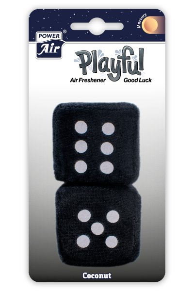 Dekorativní plyšový osvěžovač POWER AIR Good Luck v podobě hracích kostek k volnému zavěšení do prostoru.