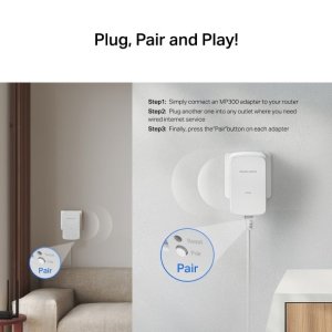 MP300 KIT přenáší internetové připojení rychlostí až 600 Mbps prostřednictvím stávajících elektrických rozvodů. Spolehlivý přenos bez rušení Wi-Fi signálu a s dosahem až 300 metrů umožní bezproblémové streamování videa ve 4K, hraní her i online práci.