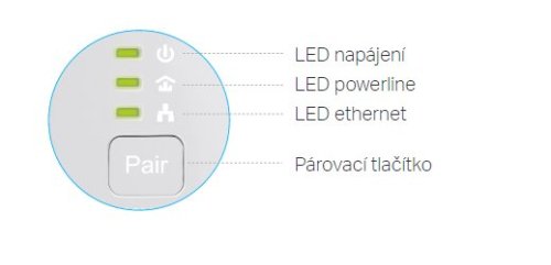 Indikace stavu: 3x LED (Power, Ethernet, Powerline)